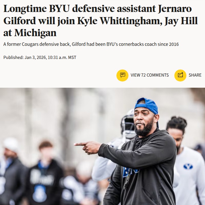Aaron Taylor+FollowBYU’s Defensive Brain Trust Heads to MichiganBig news in the college football coaching carousel: BYU’s own Jernaro Gilford, the last holdover from Sitake’s original staff and a true Cougar DB legend, is reuniting with Jay Hill and Kyle Whittingham at Michigan. Gilford’s secondary was a turnover machine—39 picks in two years! Can this BYU duo help the Wolverines’ D reach new heights? Let’s hear your takes on this coaching reunion and what it means for both programs. #Sports #Football #BYUFootball00Share