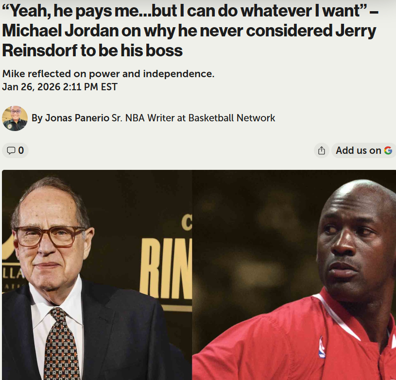 Amy Tanner+FollowMichael Jordan never had a boss—except himselfMichael Jordan’s take on work and business is wild—he says he never saw Bulls owner Jerry Reinsdorf as his boss, even though Reinsdorf signed his checks. For MJ, it was all about freedom and partnership, not hierarchy. He applied the same mindset to his brand deals with Nike, McDonald’s, and Gatorade, seeing them as equals, not superiors. Jordan’s approach was clear: if you can’t treat me as a partner, I’m out. It’s a bold way to look at work and life. What do you think—should more people adopt MJ’s attitude toward their jobs and partnerships? #Sports #Basketball #MichaelJordan10Share