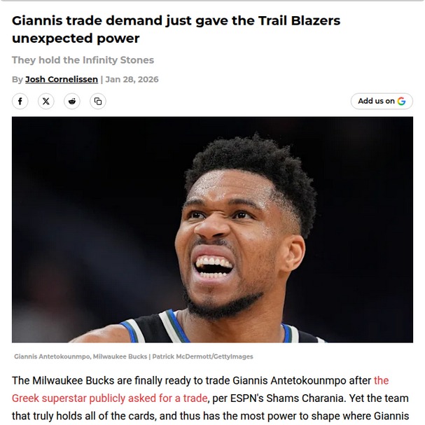 Patrick Gonzales+FollowBlazers Hold the Keys to Giannis’ Next MoveWow, the Giannis sweepstakes just got wild! With the Greek Freak officially asking out, you’d think the Bucks would call the shots—but it’s actually Rip City that’s in the driver’s seat. Portland’s stash of Milwaukee picks means any team wanting to land the two-time MVP needs to go through the Blazers first. Whether it’s the Knicks, Lakers, or Heat, Portland’s next move could decide where Giannis lands. Who saw this coming? #Sports #Basketball #Giannis00Share