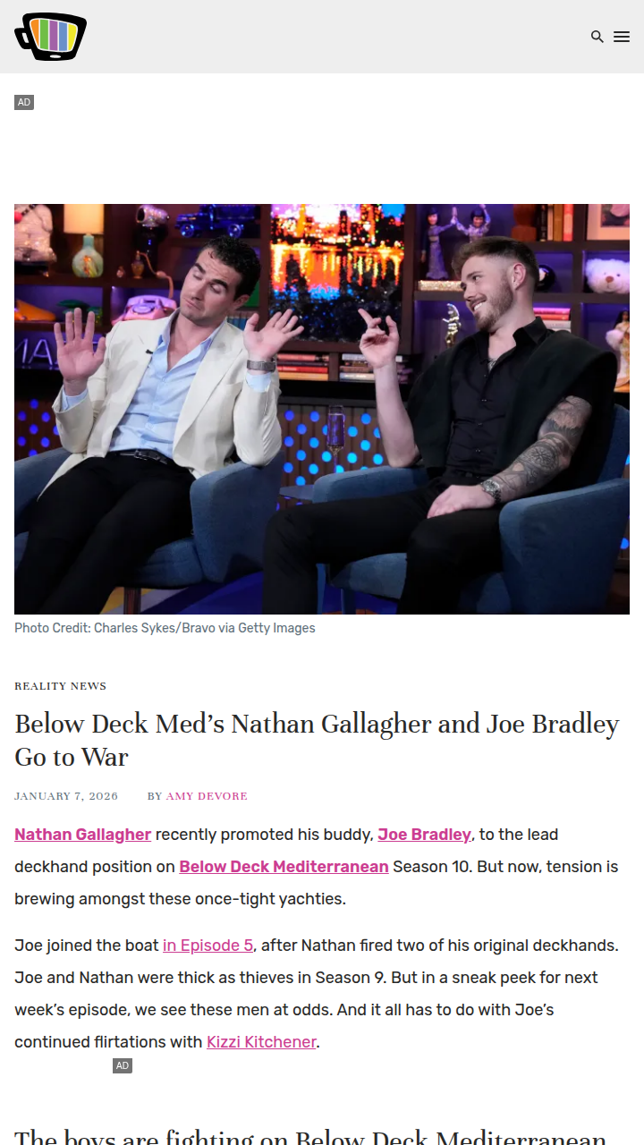 Christine Cobb+FollowJoe & Nathan’s Friendship Over? 😱Can you believe how messy things got between Joe Bradley and Nathan Gallagher on Below Deck Med? Nathan totally called Joe out for flirting with Kizzi right in front of Victoria, and it blew up fast. Now Nathan’s saying he’s outgrown Joe and might ditch the friendship for good. Plus, that sneak peek of Joe and Kizzi making out in front of Victoria? Drama overload! Is this the end for Joe and Nathan’s bromance? #Entertainment #TVSeries #BelowDeckMed00Share