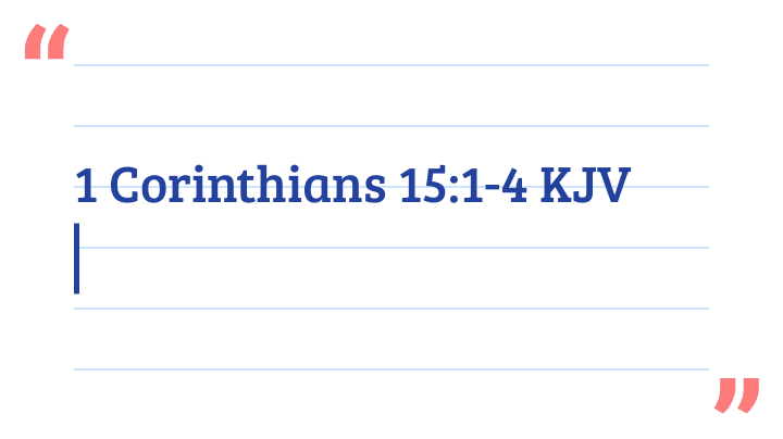 Moreover, brethren, I declare unto you the gospel which I preached unto you, which also ye have received, and wherein ye stand; [2] By which also ye are saved, if ye keep in memory what I preached unto you, unless ye have believed in vain. [3] For I delivered unto you first of all that which I also received, how that Christ died for our sins according to the scriptures; [4] And that he was buried, and that he rose again the third day according to the scriptures: