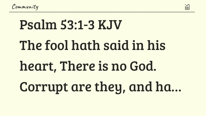 Psalm 53:1-3 KJV The fool hath said in his heart, There is no God. Corrupt are they, and have done abominable iniquity: there is none that doeth good. [2] God looked down from heaven upon the children of men, to see if there were any that did understand, that did seek God. [3] Every one of them is gone back: they are altogether become filthy; there is none that doeth good, no, not one. Romans 3:24-25 KJV Being justified freely by his grace through the redemption that is in Christ Jesus: [25] Whom God hath set forth to be a propitiation through faith in his blood, to declare his righteousness for the remission of sins that are past, through the forbearance of God; 1 Corinthians 15:1-4 KJV Moreover, brethren, I declare unto you the gospel which I preached unto you, which also ye have received, and wherein ye stand; [2] By which also ye are saved, if ye keep in memory what I preached unto you, unless ye have believed in vain. [3] For I delivered unto you first of all that which I also received, how that Christ died for our sins according to the scriptures; [4] And that he was buried, and that he rose again the third day according to the scriptures: ... ✝️✝️✝️📜📜📜🙏🙏🙏⚠️⚠️⚠️😎😎😎 #Jesus #Bible #Godisgood #GodIsReal #JesusIsReal #JesusIsGod #Gospel #Psalm #BibleScripture #JesusChrist #JesusChristSavior