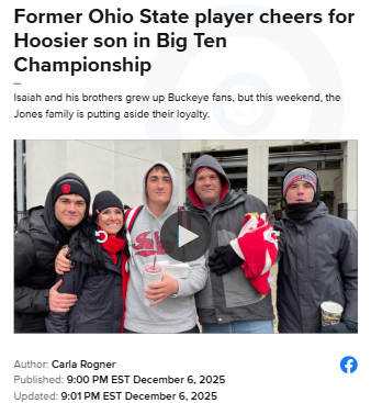Michael Pitts+FollowOhio State roots, Hoosier pride: A Big Ten family twistImagine cheering against your alma mater because your kid is on the other team! That’s the reality for DJ Jones, a former Ohio State player, as his son Isaiah suits up for Indiana in the Big Ten Championship. The Jones family, lifelong Buckeye fans from London, Ohio, are all in for the Hoosiers this weekend. DJ says nothing tops the pride of seeing your child shine—even if it means swapping Scarlet and Gray for cream and crimson. Would you root against your old team for family? Let’s hear your take! #Sports #Football #BigTenChampionship00Share