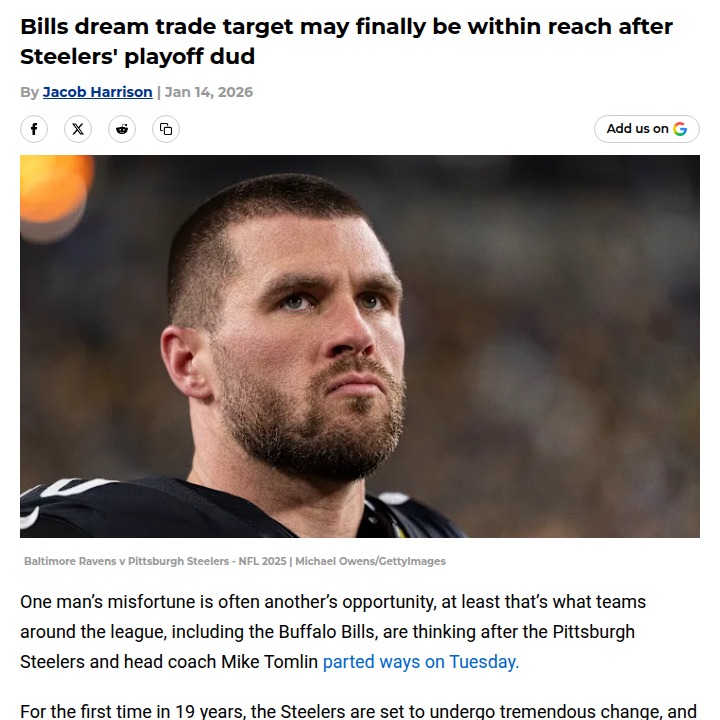 Jeffrey Armstrong+FollowSteelers Shakeup: Is T.J. Watt Buffalo Bound?Steelers Nation is reeling after Mike Tomlin’s exit and another playoff letdown, and now there’s real buzz that All-Pro T.J. Watt could be on the move. With the Steel Curtain in flux, Bills Mafia is dreaming big—imagine Watt lining up with Ed Oliver and Greg Rousseau! While Pittsburgh hasn’t tipped their hand, Watt’s postgame frustration hints he might be ready for a fresh start. Could Beane pull off a blockbuster and bring the sack king to Buffalo? #Sports #Football #BillsMafia30Share