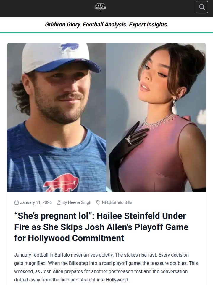 Eddie Deleon+FollowBills vs Jaguars: Hailee’s Hollywood No-ShowBills Mafia, what’s your take on this? With the Wild Card showdown against the Jags looming, talk has shifted from Josh Allen’s cannon arm to Hailee Steinfeld missing the game for the Golden Globes. Some fans are blaming superstition, others say it’s just two pros doing their thing. King Allen says he’s cool with it—should we be? Is this a real distraction or just playoff nerves? #Sports #BillsMafia #JoshAllen00Share