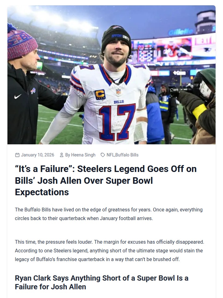 Jay Williams+FollowBills vs Jaguars: Is Josh Allen on the Hot Seat?Steelers legend Ryan Clark just threw down the gauntlet for the Bills’ own Superman, Josh Allen. With Mahomes and Lamar out, Clark says anything less than a Super Bowl is a failure for Buffalo this year. Fans are split—some say the pressure’s fair, others think Allen can’t do it all alone. What do you think: is this the year the Bills finally break through, or is the bar set way too high? #Sports #Football #BillsMafia00Share