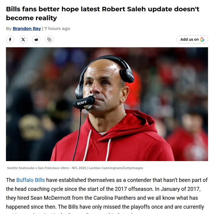 Amy Williams+FollowRobert Saleh could shake up the AFC EastRobert Saleh might be heading to Miami, and that’s big news for the Bills. Saleh’s defensive skills turned the Jets into a real headache for Buffalo, and now the Dolphins are seriously considering him for their head coach job. If this happens, the AFC East just got a lot tougher. Bills fans have enjoyed some stability with McDermott, but a Saleh-led Dolphins team could mean even tighter games and more competition for that playoff spot. What do you think—would Saleh in Miami change the balance of power in the division? #Sports #Football #BillsMafia23Share