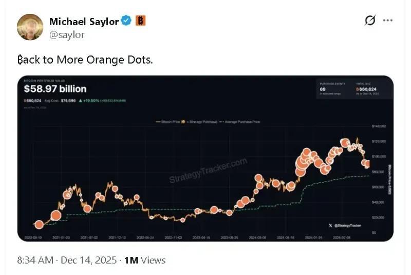 Michael Austin+FollowBitcoin Dips? Saylor’s Orange Dot Signal Is BackHeads up, crypto fans: Michael Saylor just dropped his famous ‘orange dot’ hint after Bitcoin slipped below $90K. Translation? His company, Strategy, might be loading up on more Bitcoin while prices are down. If you’re watching the market, this move has sparked rallies before—so some folks see it as a buy-the-dip signal. Keep an eye out for Monday’s update! #Business #Market #Bitcoin10Share