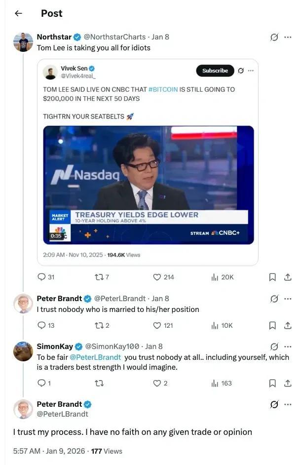 eric01+FollowWhy Bitcoin Price Predictions Are a Wild RideEver feel like crypto price targets are just guesses? Veteran trader Peter Brandt says he trusts his own process and not bold predictions—like Tom Lee’s call that Bitcoin could hit $200k this year. With Bitcoin hovering around $90k, the market’s still buzzing, but ETF flows and investor mood swings make things unpredictable. If you’re thinking of jumping in, remember: don’t bet the rent on anyone’s hot take! #Business #Market #Bitcoin00Share