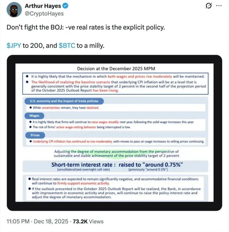 Michael Austin+FollowCould Japan’s Rate Hike Make Bitcoin Soar?So, the Bank of Japan just nudged up interest rates for the first time in ages, but they’re still super low compared to everywhere else. Arthur Hayes (yep, the crypto guy) thinks this could push more people to stash their cash in Bitcoin, maybe even sending it to the moon—like, $1 million per coin! If you’re watching your wallet, this could be a heads-up to keep an eye on how global money moves might shake up your crypto plans. #Business #Market #Bitcoin00Share