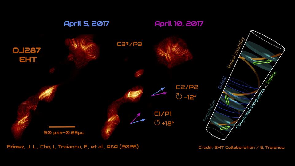 megangibson+FollowEarth-Sized Telescope Spots Black Hole DramaThe Event Horizon Telescope just pulled off a wild cosmic feat—catching shock waves and swirling pressure waves duking it out in the jet of a supermassive black hole duo, 4 billion light-years away! Imagine a black hole 18 billion times the mass of our Sun, with its smaller partner zipping around every 11 years. The telescope, made by syncing observatories across the globe, let scientists watch these wild, shape-shifting jets in real time. Space just got even more epic! #Science #BlackHole #SpaceScience00Share