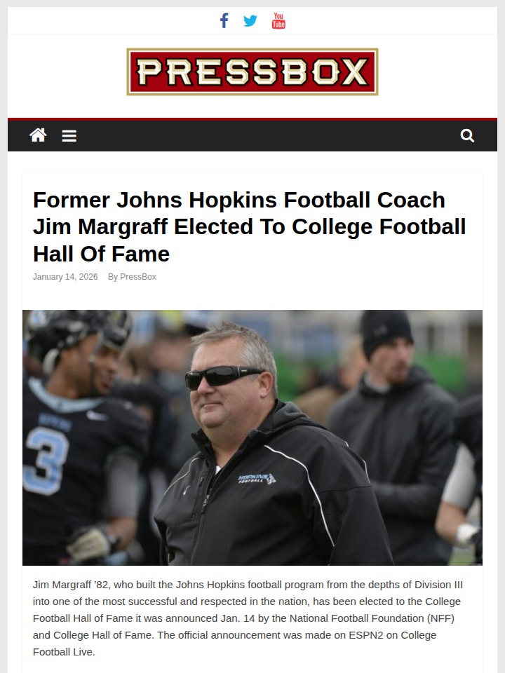 Michael Pitts+FollowLegend Margraff Joins Hall of Fame EliteBlue Jay Nation, it’s official! Coach Jim Margraff, the architect behind Hopkins’ football rise, is heading to the College Football Hall of Fame. Margraff’s legacy is unmatched—he turned a struggling DIII squad into a Centennial Conference powerhouse, capping it with a historic NCAA Semifinals run in 2018. He’s now the only DIII coach in the 2026 Hall class. What’s your favorite Margraff moment? #Sports #Football #BlueJays00Share