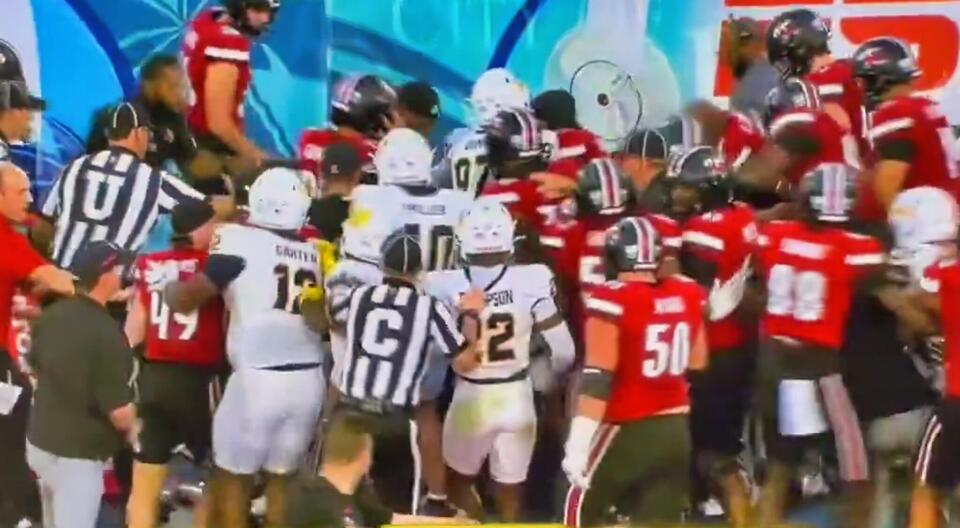 phughes+FollowBoca Raton Bowl ends in wild brawlTensions exploded at the Boca Raton Bowl as Louisville and Toledo’s hard-fought clash turned chaotic in the final minutes. After a late hit on the Cardinals’ Isaac Brown, players from both sides rushed in, leading to a massive on-field brawl with penalty flags flying everywhere. The drama overshadowed Louisville’s gritty 27-22 win, marking their second straight bowl victory. Bowl games are always emotional, but this one will be remembered for the mayhem more than the scoreboard. What do you think—are these post-game brawls just part of the passion, or do they cross the line? #Sports #Football #BocaRatonBowl00Share