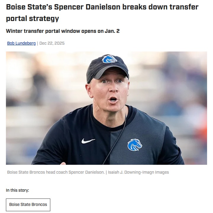 John Camacho+FollowBoise State’s transfer portal playbook: No shortcutsBoise State is sticking to its principles when it comes to the transfer portal. Coach Spencer Danielson made it clear: the Broncos won’t reach out to players until the official window opens on January 2, even as other programs bend the rules. Instead, they’re keeping tabs on potential transfers through social media and prepping to move fast once it’s legal. Danielson says it’s about finding the right fit—on and off the field—without cutting corners. With several players leaving, the next few weeks could reshape the roster. How do you feel about Boise State’s approach? Should more teams play by the book? #Sports #Football #BoiseState00Share