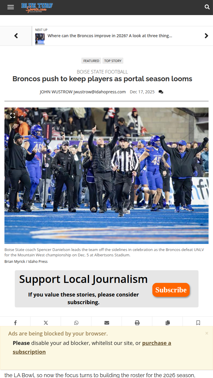 Jay Williams+FollowBoise State’s big test: Keeping our BroncosBoise State football faces a huge challenge this offseason: holding onto its top players as the transfer portal opens. With the team set to join the new Pac-12, Coach Danielson is doubling down on developing homegrown talent instead of relying on transfers. He’s upfront about what players can earn and is pushing for more resources to keep the roster strong. While some departures are expected, the focus is on keeping the core together. What do you think—should Boise State invest more in player retention, or lean into the transfer portal? #Sports #Football #BoiseState00Share