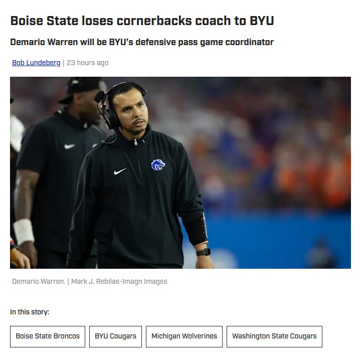 Christopher Hughes+FollowBoise State’s coaching shakeup: What’s next?Losing Demario Warren to BYU is a big shift for Boise State, especially after such a strong season for the Broncos’ pass defense. Warren helped turn the secondary into one of the best in the country, and now he’s heading to BYU to take on a bigger role. With three assistants gone, it feels like the end of an era for Boise State’s staff. How do you think these changes will impact the Broncos next season? And will BYU’s defense see a big jump with Warren on board? Let’s hear your thoughts! #Sports #Football #BoiseState00Share