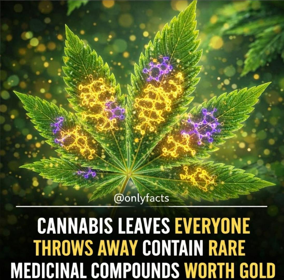 Cannabis leaves, often discarded during cultivation, contain a range of bioactive compounds including minor cannabinoids flavonoids, and terpenes that are being studied for their potential therapeutic properties. While the highest concentrations of cannabinoids like THC and CBD are typically found in the flowers, leaves can still contain measurable amounts of esser-known compounds such as cannabigerol (CBG) and various antioxidant flavonoids, which may contribute to anti-inflammatory and neuroprotective effects. Ongoing research is exploring how these secondary compounds may add value in medical and pharmaceutical applications though their concentrations and clinica relevance vary depending on plant strain and processing methods #CannabisResearch #MedicinalPlants #Phytochemicals #Cannabinoids #Terpenes #PlantScience #NaturalCompounds #Medicallnnovation #Botany #OnlyFacts Andre. C. M., Hausman, J. F., & Guerriero, G 2016). Cannabis sativa: The plant of the thousand and one molecules. Frontiers in Plant Science. 7, 19 Russo, E. B. (2011). Taming THC: Potentia cannabis synergy and phytocannabinoid-terpenoid entourage effects. British Journal of Pharmacology 163(7), 1344-1364