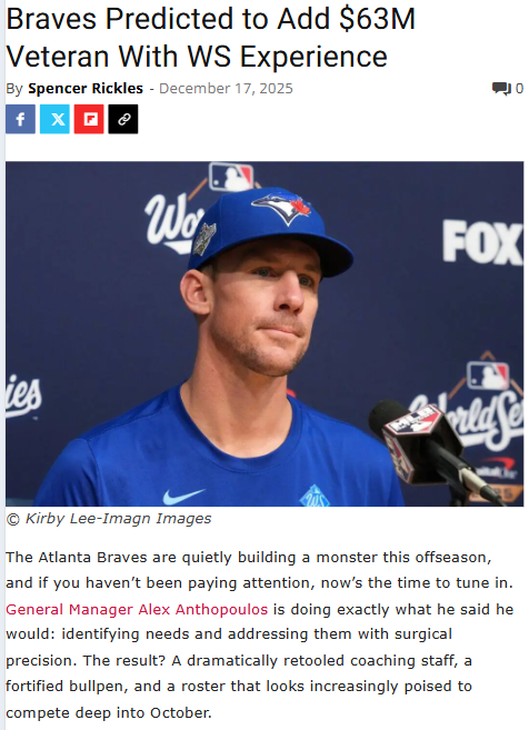 Catherine Reeves+FollowBraves eye $63M vet to anchor rotationAtlanta’s front office isn’t messing around this offseason. After revamping the coaching staff with fresh, modern minds and plugging every major roster hole, the Braves are now rumored to be targeting Chris Bassitt—a proven, durable starter with World Series experience. With so many pitchers coming off injuries, adding Bassitt could be the steadying force Atlanta needs to turn a good team into a true powerhouse. If this move happens, the Braves might just roll into Spring Training as the team to beat in the National League. What do you think—would Bassitt be the missing piece? #Sports #Baseball #Braves10Share