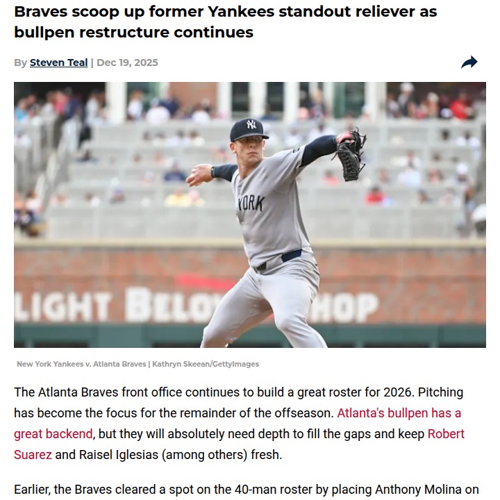 Andrea Castillo+FollowBraves take a bold swing with Ian HamiltonAtlanta’s bullpen just got a shakeup—former Yankees standout Ian Hamilton is joining the Braves on a one-year deal. Hamilton’s 2023 numbers were electric, but injuries have kept him from finding consistency. Still, the Braves see big upside: his strikeout stats and pitch movement are elite when he’s healthy. If he can rediscover that 2023 form, Atlanta might have landed a hidden gem for those crucial middle innings. What do you think—will this risky move pay off, or is Atlanta rolling the dice too much? Let’s hear your thoughts on the new-look bullpen! #Sports #Baseball #Braves00Share