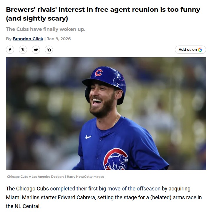 jillian59+FollowCubs’ Bellinger Saga: Brewers Fans, Worried?Okay, Crew fans, is anyone else finding the Cubs’ Cody Bellinger reunion talks both hilarious and a little nerve-wracking? After trading him away for basically nothing, Chicago now wants to pay big to bring the 2019 NL MVP back. With Edward Cabrera in the mix and rumors swirling, the North Siders could have a stacked lineup—meanwhile, Milwaukee’s been quiet. Could this tip the NL Central balance? Let’s hear your takes! #Sports #Baseball #Brewers21Share