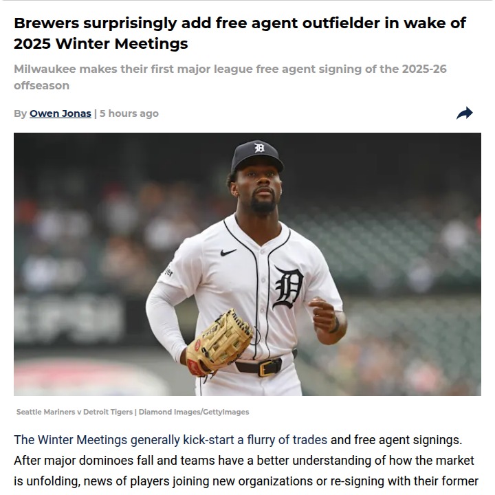 Maria Chavez+FollowBrewers shake up outfield with Akil BaddooMilwaukee’s front office just threw a curveball by signing Akil Baddoo to a major league deal—despite already having a crowded outfield and tight payroll. Baddoo, once a breakout rookie with the Tigers, has struggled lately and spent most of last season in Triple-A. Still, his speed and versatility make him an intriguing addition. With nine outfielders now on the 40-man roster, this move has fans buzzing: is this a sign of bigger trades coming, or just a bet on untapped potential? What do you think this means for the Brewers’ plans? #Sports #Baseball #Brewers00Share