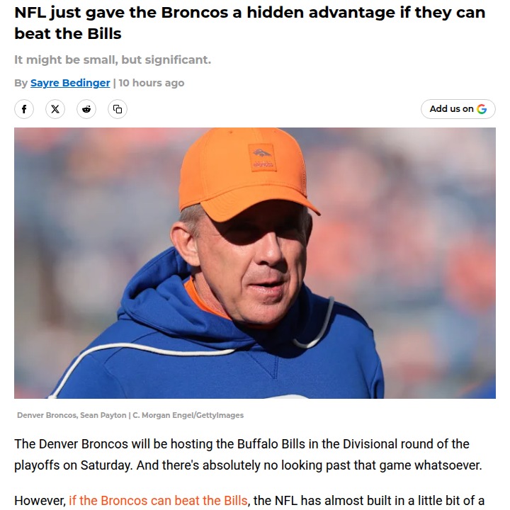 Jay Williams+FollowBroncos’ playoff schedule could be a game-changerThe Broncos are set up for a sneaky edge this postseason—if they take down the Bills on Saturday, they’ll get an extra day of rest before the AFC Championship. That’s on top of already having nearly double the rest the Bills get this week. While it might sound minor, that extra recovery and prep time can make a real difference when every play counts. Plus, Denver won’t have to travel, so they can focus on getting healthy and game-ready at home. Is this the kind of advantage that could tip the scales in a tight playoff run? #Sports #Football #BroncosCountry20Share