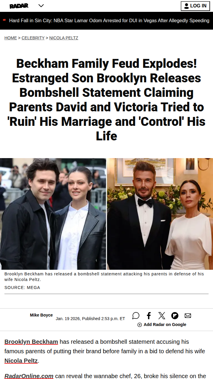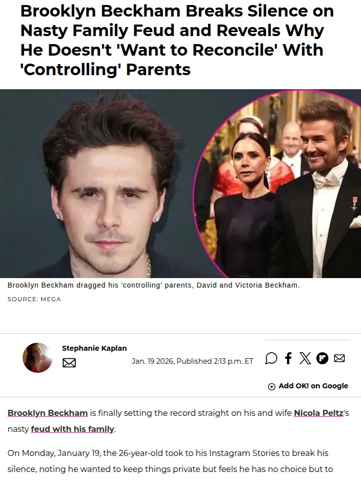 Mrs. Maria Shelton MD+FollowBrooklyn Beckham Spills All on Family DramaBrooklyn Beckham just dropped a bombshell about his family feud, calling out David and Victoria for controlling his life and pushing fake family vibes for the public. He says he’s finally standing up for himself, claiming his parents tried to sabotage his marriage and even made his wedding super awkward. Brooklyn’s done with the ‘Brand Beckham’ life—he just wants peace, privacy, and real happiness with Nicola. Wild, right? #Relationships #BrooklynBeckham #FamilyDrama00Share