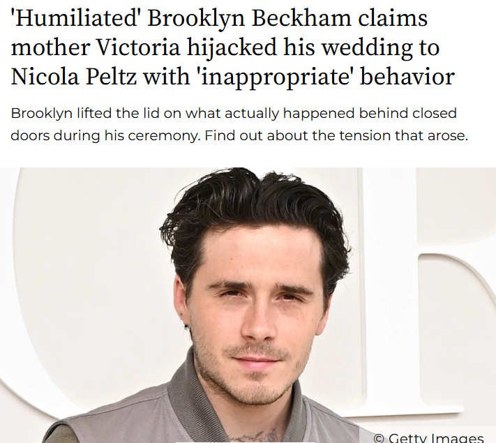 Chad Kemp+FollowBrooklyn Beckham Wedding Drama 😳Brooklyn Beckham just dropped major tea about his wedding to Nicola Peltz, claiming Victoria Beckham totally hijacked their first dance and acted super inappropriately in front of everyone! Fans are now split—some say Brooklyn’s exposing too much family drama, while others think Victoria crossed a line. The debate is wild: Was Victoria just being a mom, or did she really ruin their big day? #Entertainment #Celebrity #BrooklynBeckham11Share