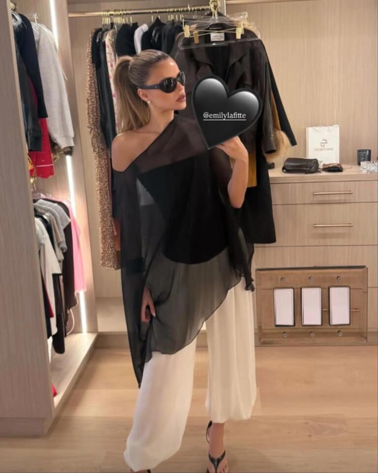 Sarah Carter+FollowBrooks Nader’s Sheer Top MomentBrooks Nader just dropped some fire on her Instagram story, rocking a see-through black top layered over a corset and paired with white palazzos. The model’s bold look was all about those confident poses, oversized sunnies, and strappy heels. Fans are obsessed with how she balanced daring and classy—definitely a style inspo for anyone wanting to turn heads! #Beauty #BrooksNader #FashionInspo10Share