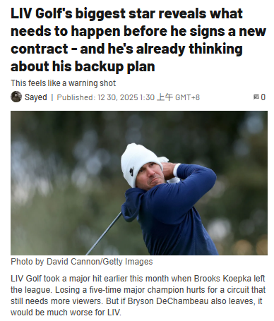 frank59+FollowBryson’s Next Move: LIV or YouTube Star?Bryson “The Scientist” DeChambeau’s contract drama with LIV Golf is heating up, especially after Brooks Koepka’s exit. While Bryson’s YouTube game is strong—2.5M+ subs and viral challenges—PGA Tour pro Michael Kim isn’t buying the idea that Bryson will ditch pro golf for content creation. Kim says Bryson’s too competitive to just walk away, and with LIV needing star power after Koepka, expect some fireworks in these contract talks! #Sports #Golf #BrysonDeChambeau00Share