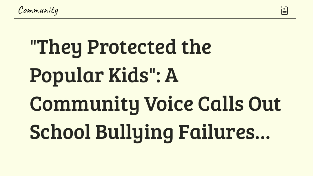 "They Protected the Popular Kids": A Community Voice Calls Out School Bullying Failures Mark Neville's voice trembles with raw emotion as he recounts a system that failed him—and continues failing children today. His story exposes a devastating pattern: schools protecting bullies while vulnerable students suffer in silence. Neville endured relentless bullying throughout elementary school because of his weight. Teachers witnessed it. Staff saw it happen. Yet they turned away, unwilling to discipline star athletes or children of well-connected families. Why risk upsetting influential parents over an "overweight low-income kid"? The pain drove Neville to a dark place. In junior high, he weaponized his size and became a bully himself. "I didn't like myself," he admits, carrying that shame decades later. The cycle repeated with his stepdaughter. She returned home bloodied daily, tormented by another student. The superintendent—ironically a former student himself—refused to act. The bully's parents were his friends. His solution? A "No Bullying" sign. Performative activism at its emptiest. When Neville's family chose homeschooling to protect their daughter, the superintendent objected—not from concern for her wellbeing, but over lost funding. Now, Neville reads about a 12-year-old girl who took her life after her school district refused to intervene. Another preventable tragedy. Another family destroyed. His message rings clear: school districts that shield popular bullies over innocent students must face accountability. Anti-bullying policies mean nothing without enforcement. Signs mean nothing without action. The social hierarchy of childhood shouldn't determine which students deserve protection. Every child deserves safety. Every victim deserves justice. It's time schools prioritize students over reputation, athletics, and politics. #EndSchoolBullying #BullyingAwareness #ProtectOurKids #SchoolAccountability #StudentSafety #AntiBuillying #EducationReform