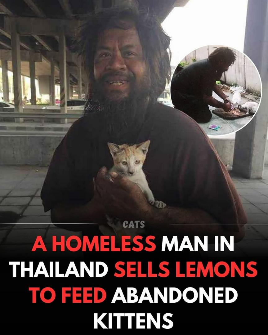 A Homeless Man in Thailand Sells Lemons to Feed Abandoned Kittens On the busy streets of Thailand, one homeless man has quietly captured hearts with a simple yet powerful act of compassion. Every day, he sells small bags of lemons, not to improve his own circumstances, but to make sure a group of abandoned kittens never goes hungry. Known locally as Loong Dum, he has no permanent home and often struggles to find enough food for himself. Yet despite his hardships, he puts the needs of the stray cats before his own. To him, they are not just animals wandering the streets — they are family. Loong Dum says his journey began when he befriended a stray cat who stayed by his side. Over time, more kittens appeared, and he felt a deep responsibility to care for them. What started as a simple bond grew into a daily commitment. Even on days when he barely earns enough money, he ensures the cats are fed first. If food is scarce, he willingly skips meals. Passersby began noticing his devotion. Touched by his kindness, many have shared his story online, sparking admiration and support from thousands of people. Some offer donations, while others stop to help feed the kittens or buy extra lemons to support him. In a world often focused on material success, Loong Dum’s story serves as a gentle reminder: compassion does not depend on wealth. Sometimes, those with the least resources possess the greatest capacity for love. His quiet sacrifice continues to inspire, proving that even the smallest acts of kindness can make a powerful difference.#HomelessWithAPet #Homelessness #Cats #CatLovers #News #NewsBreaks #Kindness #Animal #News #StrayCat #Storytelling #StoryTime
