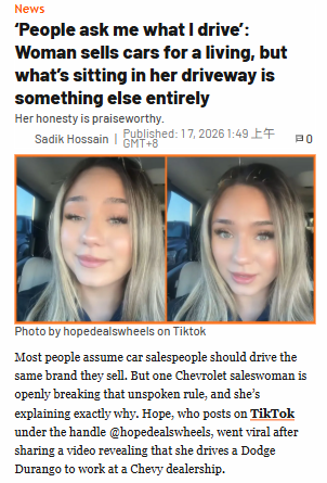 Jennifer ArnoldFollowingChevy Saleswoman Drives a Dodge?! 🚗Didn’t expect this twist: a Chevy saleswoman, Hope (@hopedealswheels), just went viral for revealing she actually drives a Dodge Durango to her Chevy dealership job! Fans are split—some say it’s smart to buy used for value, others think it looks bad not repping your own brand. Is brand loyalty overrated, or does it really matter in car sales? This debate is heating up! #Entertainment #TVSeries #CarSales00Share