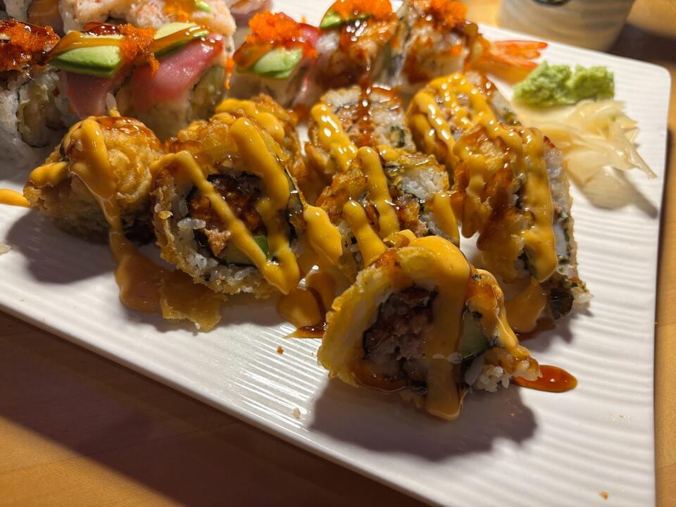 Valerie Hall+FollowChampaign’s Sumo Kitchen redefines sushi nightsSumo Kitchen just raised the bar for sushi in Champaign, blending playful vibes with bold flavors right on Neil Street. The place is buzzing with neon lights, a selfie spot with a sumo mascot, and a menu that mixes classic Japanese favorites with creative twists—think truffle fries and deep-fried scallop rolls. Every dish feels like a mini celebration, from the loaded shrimp tempura roll to the adventurous mango tango. Whether you’re a sushi purist or love trying new combos, this spot brings something fresh to the table. Who’s already been, and what’s your must-try roll? #Food #ChampaignEats #SushiLovers00Share