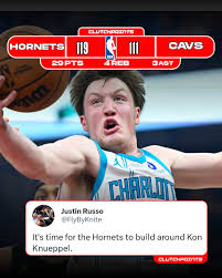 Patty Mills+FollowIs Kon Knueppel a new franchise cornerstone?Hornets 119–111 (OT) Cavs. Rookie Kon Knueppel got 29 points and big buckets late as Charlotte pitched a 5–0 OT shutout. Brandon Miller 25 & 13, Miles Bridges 20–10–6. Knueppel looked fearless and in control. Should the Hornets trade Lamelo and build around him now? #NBA #Hornets #KonKnueppel #Cavaliers #Overtime #RookieWatch #Charlotte 20Share