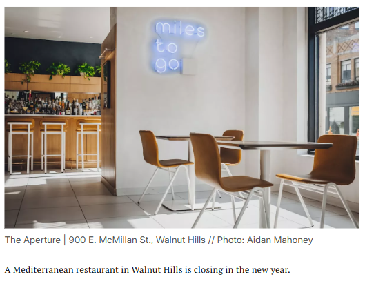 Robert Daniels+FollowBeloved Walnut Hills spot The Aperture closingCincinnati’s food scene is losing a gem—The Aperture, a Mediterranean restaurant that earned a spot on USA Today’s best list, is closing after just two years. Their last service will be on New Year’s Eve. The chef-owner says he’s taking a break to reflect and learn from the past, with hopes to rebuild in the future. It’s bittersweet for regulars and staff who made this place special. What’s your favorite memory from The Aperture, and what do you hope to see if they return? #Food #CincinnatiEats #WalnutHills00Share
