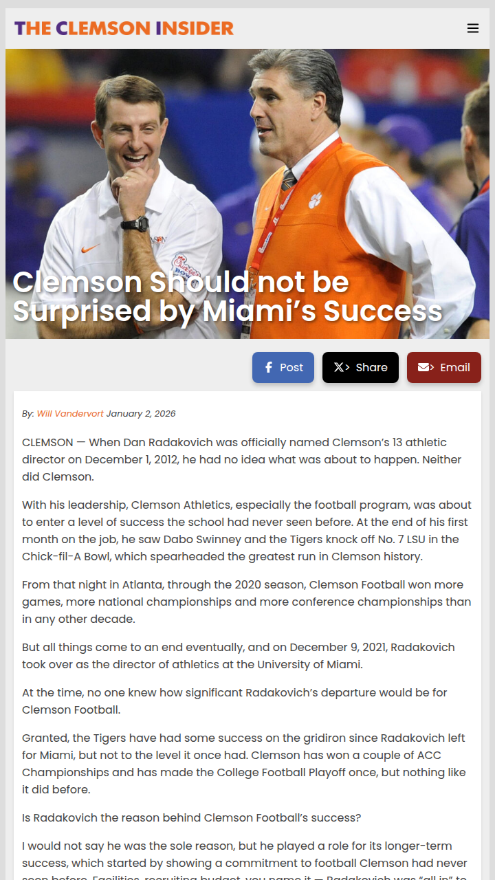 Jeffrey Armstrong+FollowHow Miami’s football rise echoes Clemson’s glory daysClemson fans have seen this playbook before: when Dan Radakovich was in charge, the Tigers soared to new heights. Now, with Radakovich leading Miami, the Hurricanes are suddenly back in the national spotlight—just two wins from a championship. It’s not just about coaching; it’s about leadership, investment, and embracing the new era of NIL and the transfer portal. While Clemson’s momentum has slowed, Miami’s is picking up fast. Do you think one leader can really make that much difference in college football? How much credit does Radakovich deserve for Miami’s turnaround? #Sports #Football #Clemson00Share