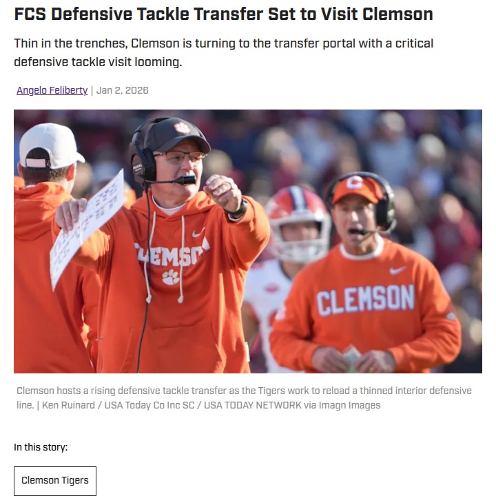 Jay Williams+FollowClemson eyes FCS standout for D-line boostClemson’s defensive line is getting a major shakeup, and all eyes are on Kourtney Kelly, a rising FCS defensive tackle who’s visiting campus soon. With so many Tigers leaving for the draft or transferring, Kelly’s experience and breakout season at West Georgia could make him a game-changer for Clemson’s thin interior. He’s already caught the attention of recruiting experts, who think he’s likely to commit after his visits. What do you think—can a former under-the-radar recruit from a smaller program step up and fill the gap for Clemson’s defense next season? #Sports #Football #Clemson00Share