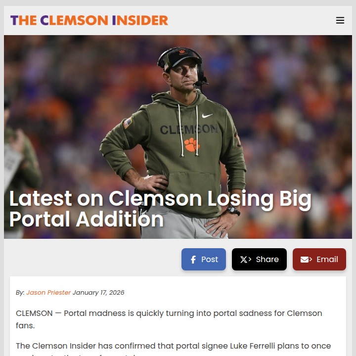 Jeffrey Armstrong+FollowClemson’s portal shakeup: Ferrelli exits fastLuke Ferrelli, Clemson’s prized portal addition and last year’s ACC Defensive Freshman of the Year, is already packing his bags for Ole Miss—just days after enrolling and joining team activities. The Tigers couldn’t even reach him for a stretch, and now he’s turned in his books and laptop. This sudden move highlights how unpredictable the transfer portal has become for college football programs. Clemson is reportedly exploring legal options, but what’s next for the team—and should schools be able to hold players to their commitments? Let’s hear your thoughts on this wild new era! #Sports #Football #Clemson00Share