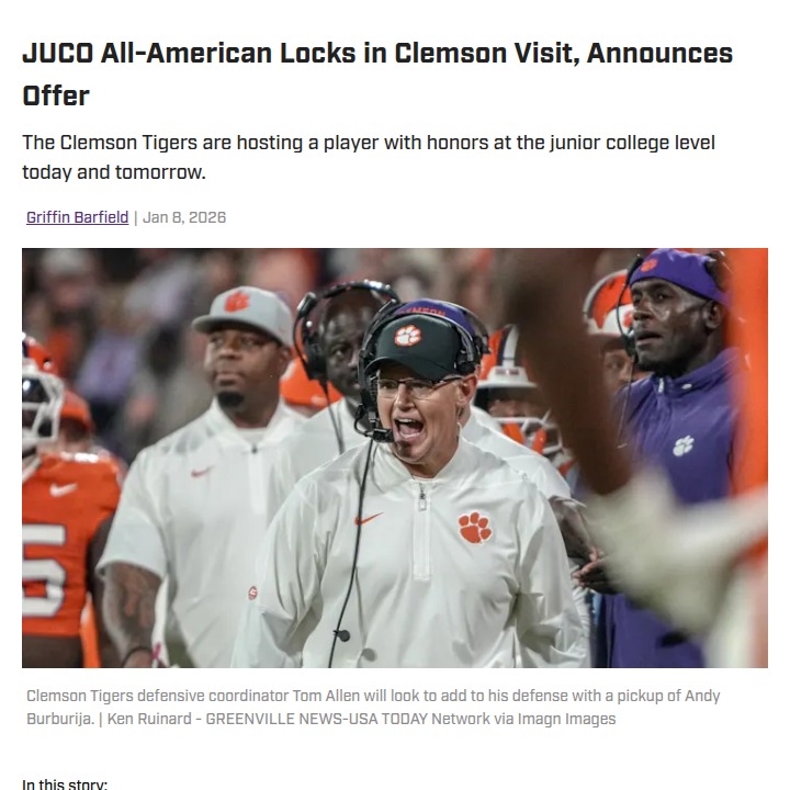 glen25+FollowJUCO Sack Machine Eyes Tigers D-LineBig news for Tiger Town: Andy Burburija, the JUCO All-American who terrorized offenses with 11 sacks last season, is on campus for a Clemson visit. With the portal heating up and Dabo reloading after losing key linemen, Burburija could be the next big piece. The Reivers’ star was set for K-State, but a coaching shakeup reopened his recruitment. Now, he’s got offers from heavy hitters, but could Death Valley be his next home? #Sports #Football #ClemsonTigers00Share