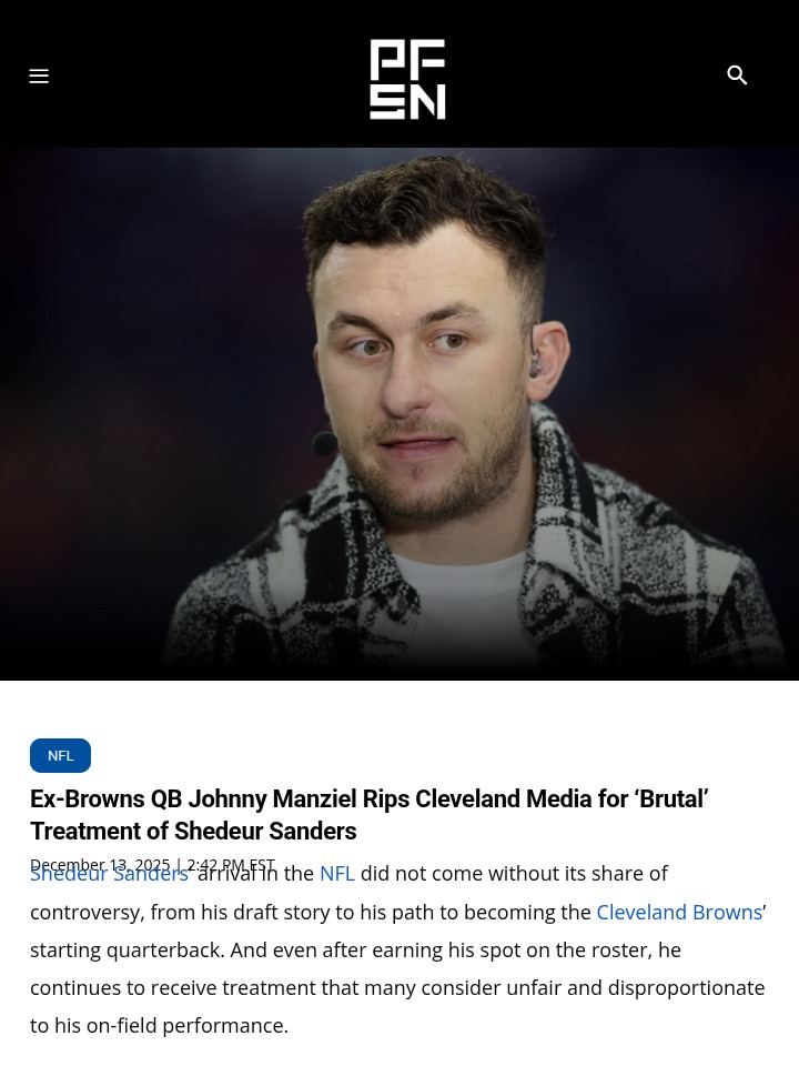 Jay Williams+FollowCleveland QB drama: Manziel calls out mediaJohnny Manziel isn’t holding back about the heat Shedeur Sanders is facing from Cleveland’s sports media. Manziel, who knows the pressure of being a Browns quarterback, says the relentless criticism isn’t just tough—it’s damaging. He points out that tough questions about head coach Kevin Stefanski and talk of sabotage aren’t helping Sanders grow, especially when the rookie is just a few games in. Cleveland fans, do you think the local media is too harsh on new QBs, or is this just part of playing in a football-crazy city? #Sports #Football #ClevelandBrowns00Share