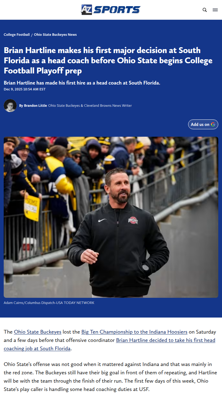 Jay Williams+FollowBrian Hartline’s big move shakes up USF and Ohio StateBrian Hartline isn’t wasting any time at South Florida—he’s already hired Josh Aldridge, a defensive mind who just led East Carolina to a top-30 national ranking, as his first defensive coordinator. While Hartline is still calling plays for Ohio State as they prep for the Cotton Bowl, he’s building his USF staff on the fly. It’s wild to see a coach juggle two high-stakes jobs at once! Do you think this hands-on approach will pay off for both teams, or is Hartline stretching himself too thin? #Sports #Football #CollegeFootball00Share