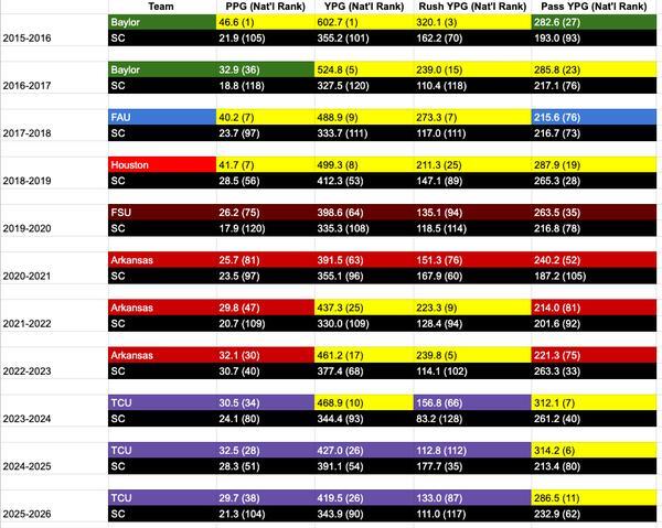 Aaron Taylor+FollowBriles vs USC: Offense stats that shockLooking at the last 11 seasons, Briles-led offenses have landed in the top 25 a whopping 21 times across key categories, while USC’s offenses didn’t crack the top 25 even once. The only times USC outperformed a Briles offense were rare exceptions—2020 rushing and 2022 passing. It’s wild to realize how much more consistent and explosive Briles’ teams have been, especially with recent success in both passing and rushing. With Briles and White teaming up now, could this be the formula for a championship run? Curious to hear what everyone thinks about this shift in offensive firepower! #Sports #Football #CollegeFootball00Share
