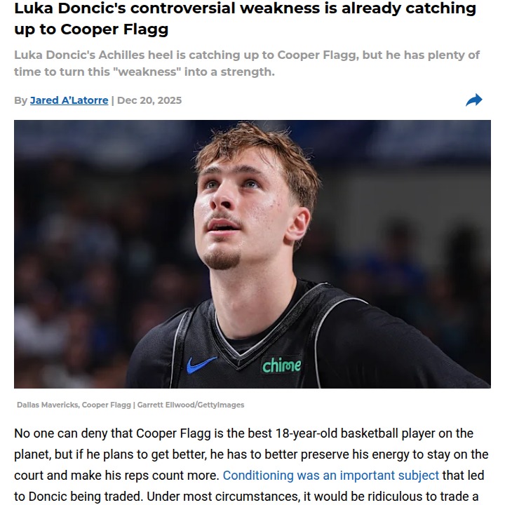 Ryan Lopez+FollowFlagg’s Conditioning: Will He Avoid Luka’s Fate?Cooper Flagg is lighting up the league as an 18-year-old phenom, already drawing comparisons to legends like King James and T-Mac. But some fans are starting to notice a familiar storyline: Flagg’s all-out style is showing cracks in his conditioning, echoing the concerns that once dogged Luka Magic. Flagg’s recent 40-point game was historic, but can he keep up this pace, or will he need to pace himself to avoid Luka’s pitfalls? #Sports #Basketball #CooperFlagg00Share