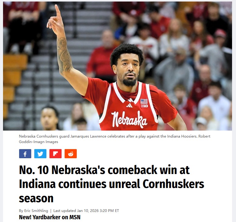 CrimsonChameleon+FollowNebraska’s wild comeback stuns IndianaNebraska fans, this season just keeps getting better! Down by 16 in the second half, the Cornhuskers stormed back to beat Indiana 83-77 on the road, keeping their undefeated streak alive at 16-0. Jamarques Lawrence was on fire, dropping 27 points and nailing five threes. The team’s grit and veteran leadership really showed—Nebraska’s now one of only two unbeaten teams in the Big Ten. With this kind of momentum, could this finally be the year Nebraska makes real noise in March Madness? What do you think is fueling this historic run? #Sports #NebraskaBasketball #Cornhuskers00Share