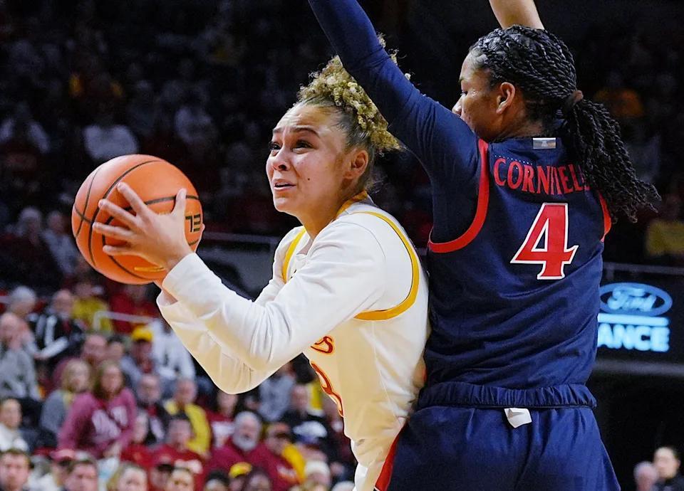 AmberAbyss+FollowCyclones dominate Arizona with grit and teamworkJada Williams powered through illness to lead Iowa State to a commanding 25-point win over Arizona, showing just how much heart this Cyclones squad has. With five players scoring in double digits and a scorching second quarter, Iowa State never let up—even as Arizona finished the game with only four players on the court due to fouls and injury. Williams dropped 19 points and seven assists against her former team, proving she’s a true competitor. What do you think made the biggest difference in this game: the Cyclones’ depth, Arizona’s foul trouble, or something else? Let’s talk! #Sports #Cyclones #IowaState00Share