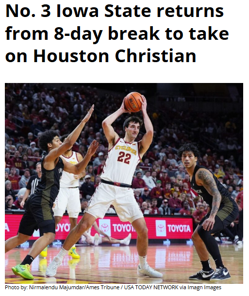 GalacticGiraffe+FollowCyclones back in action after holiday breakIowa State’s undefeated run gets its next test as the Cyclones return from an eight-day holiday break to face Houston Christian at Hilton Coliseum. With a 12-0 record and an explosive offense averaging over 90 points a game, the Cyclones have been tough to beat, especially with Milan Momcilovic’s hot hand from deep. Coach Otzelberger gave the team time to recharge, but now it’s all about keeping the momentum before Big 12 play kicks off. Can Iowa State stay sharp after the break, or will Houston Christian catch them off guard? What do you think makes a team stay focused after time off? #Sports #IowaState #Cyclones00Share
