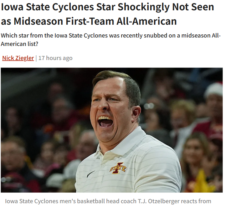 GalacticGiraffe+FollowIowa State’s Joshua Jefferson deserves more respectJoshua Jefferson is putting up monster numbers for the undefeated Iowa State Cyclones, yet he’s only landed on the second team of midseason All-Americans. Averaging 17.7 points, 7 rebounds, and 5 assists, Jefferson has been the driving force behind Iowa State’s climb to No. 3 in the nation. His all-around game and leadership have made the Cyclones a real title threat. It’s wild to see him overlooked for first-team honors. If he keeps this up, how can voters keep ignoring him? What do you think—should Jefferson be a lock for first-team All-American? #Sports #IowaState #Cyclones00Share
