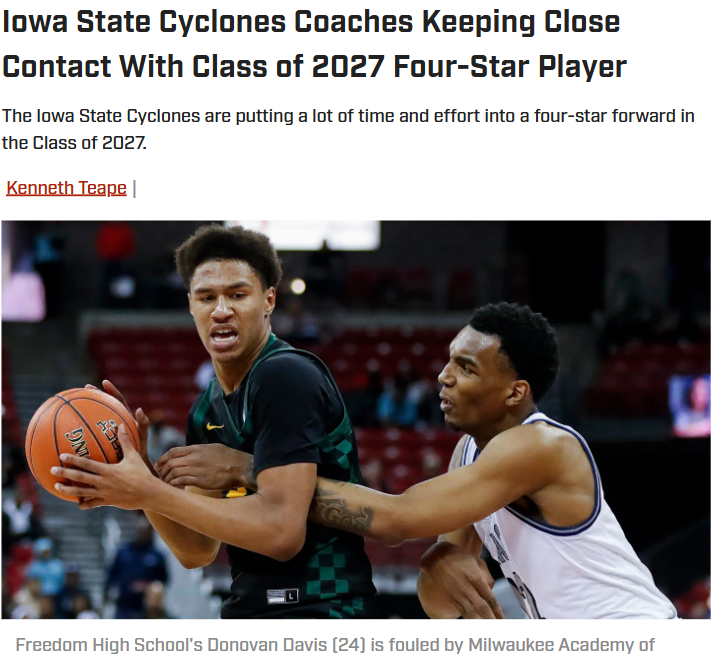 GalacticGiraffe+FollowCyclones’ recruiting hustle could shape futureIowa State’s basketball program isn’t just winning games—they’re building for the long haul by staying in constant touch with top talent like four-star forward Donovan Davis. The coaching staff is making Davis a priority, calling him multiple times a week and planning key visits during big matchups. With the Cyclones already ranked No. 3 and their recent classes making an immediate impact, it’s clear that smart recruiting is fueling their rise. What do you think: Is this hands-on approach the secret to keeping Iowa State at the top, or will the competition catch up? #Sports #IowaState #Cyclones00Share