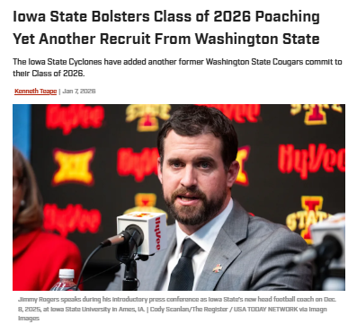 Christopher Hughes+FollowCyclones Land More Cougars via Transfer PortalHuge news for Cyclone Nation! Coach Jimmy Rogers is making waves in Ames, pulling in two more former Cougars—Adlai Lounsbury and Brody Miller—through the transfer portal. Lounsbury, a lifelong ISU fan, shores up our kicking game for the future, while Miller brings depth and potential to a revamped secondary. The Rogers era is off to a promising start, especially with these Pullman-to-Ames moves! #Sports #Football #Cyclones00Share